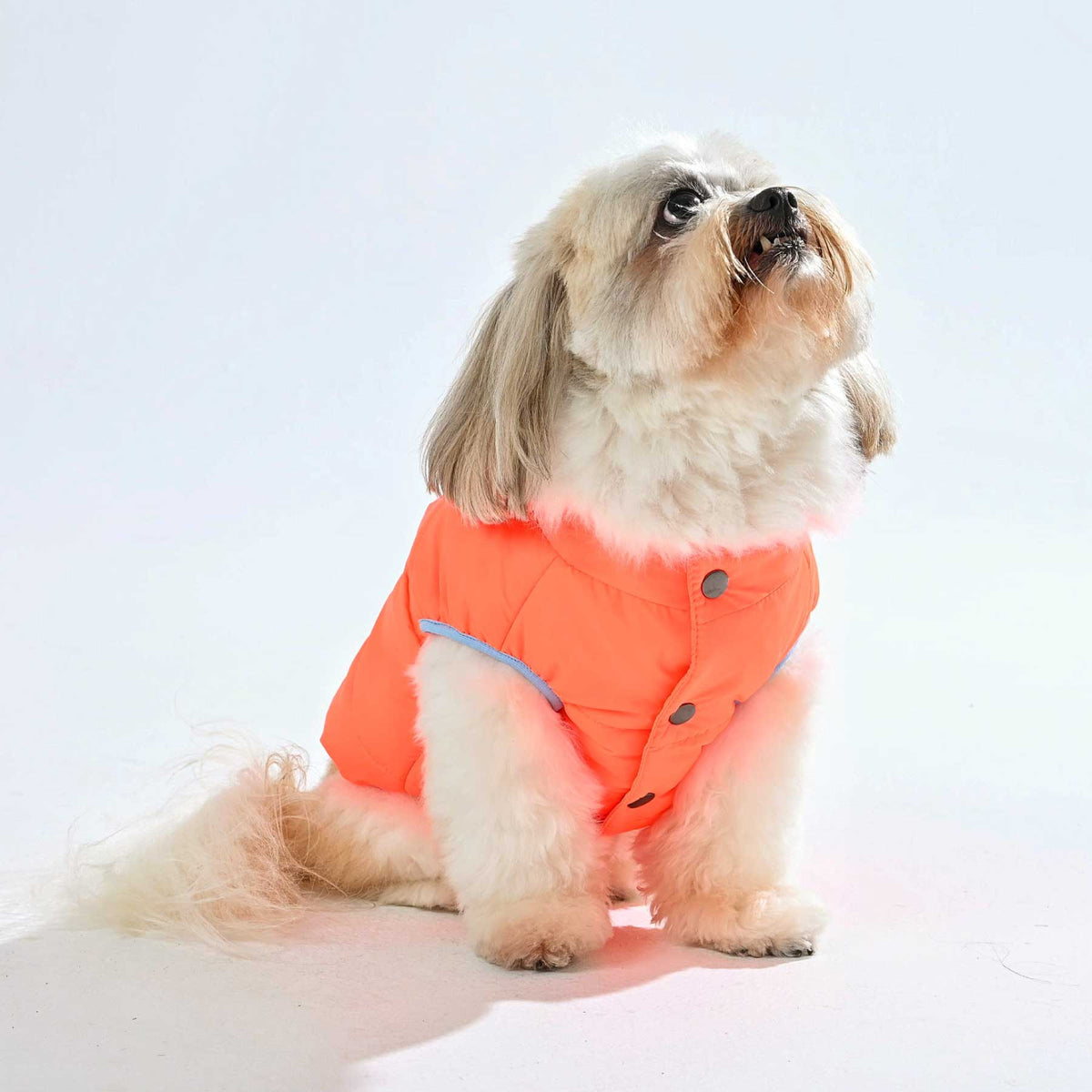 Confeccionado con tela impermeable de alto rendimiento, ligera y suave al tacto, este chaleco fue creado para proteger a tu mascota en los días más fríos o lluviosos sin sacrificar elegancia. Su corte limpio, sus acabados de alta costura y su color audaz reflejan un equilibrio perfecto entre funcionalidad y diseño de lujo.