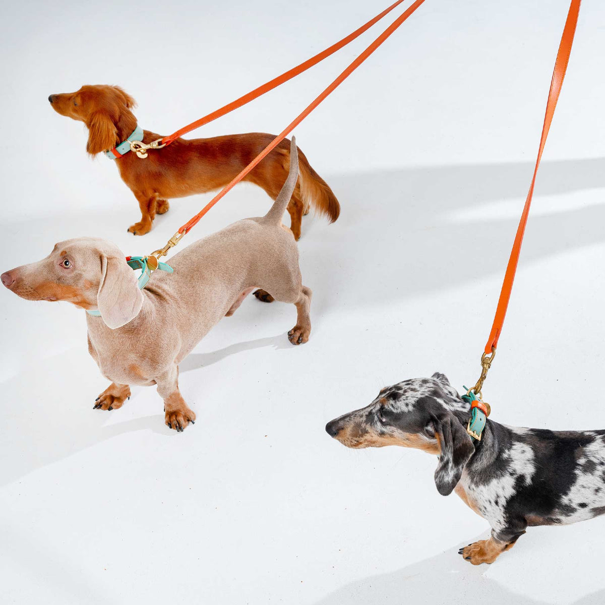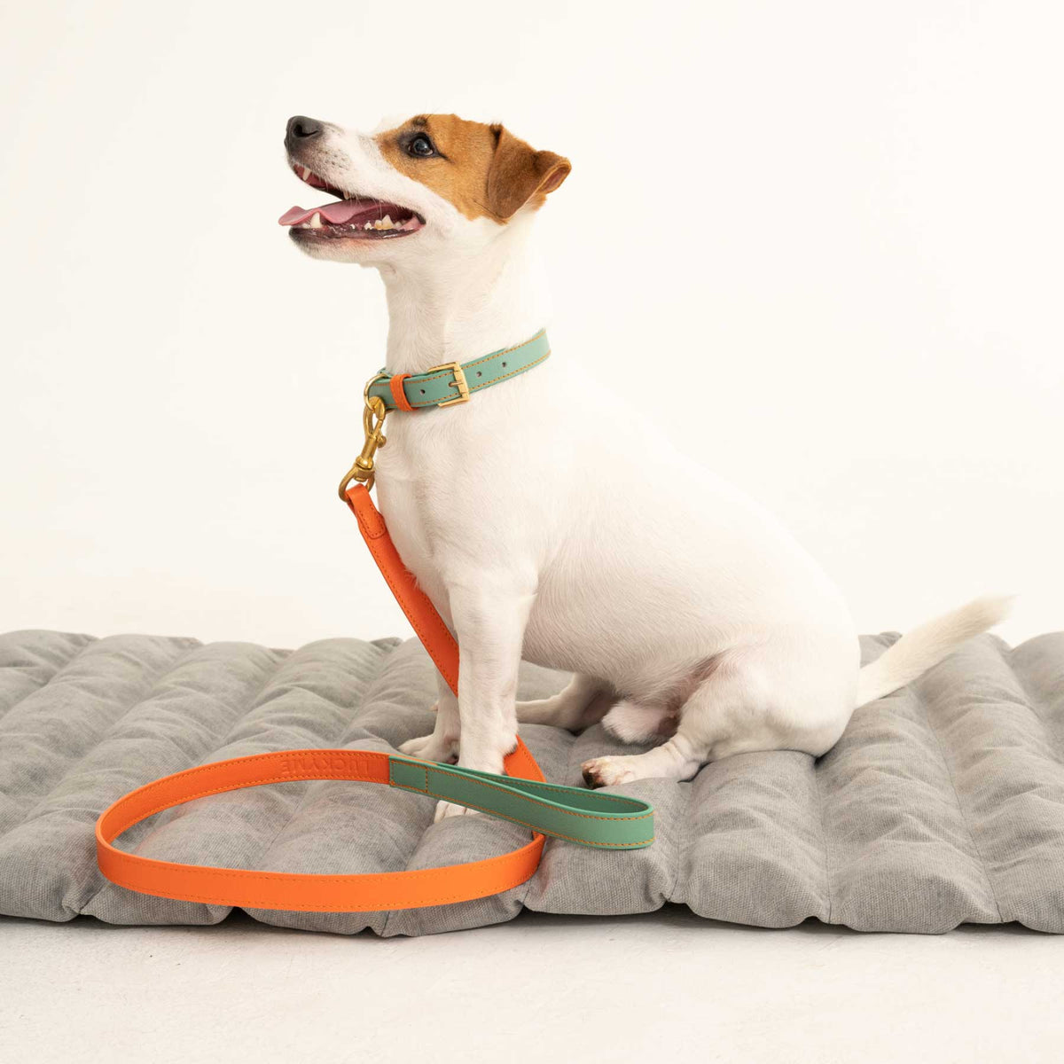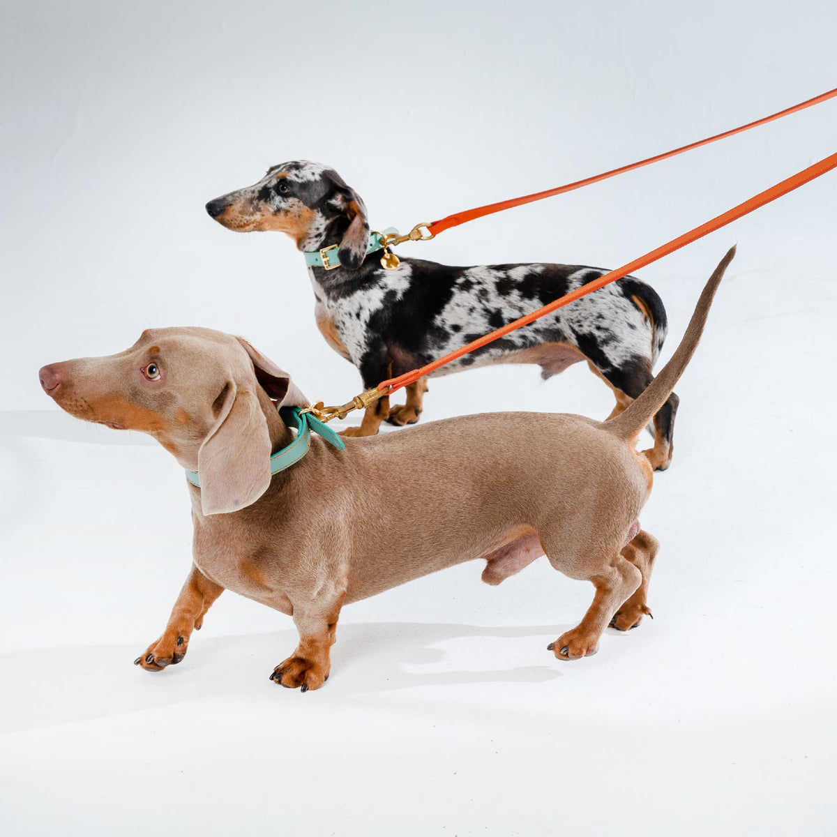 La correa, igual de impactante, cuenta con un mosquetón de cobre dorado de alta resistencia, que brinda máxima seguridad sin comprometer la estética. Juntas, estas piezas elevan cualquier paseo a una declaración de estilo con espíritu irrepetible.