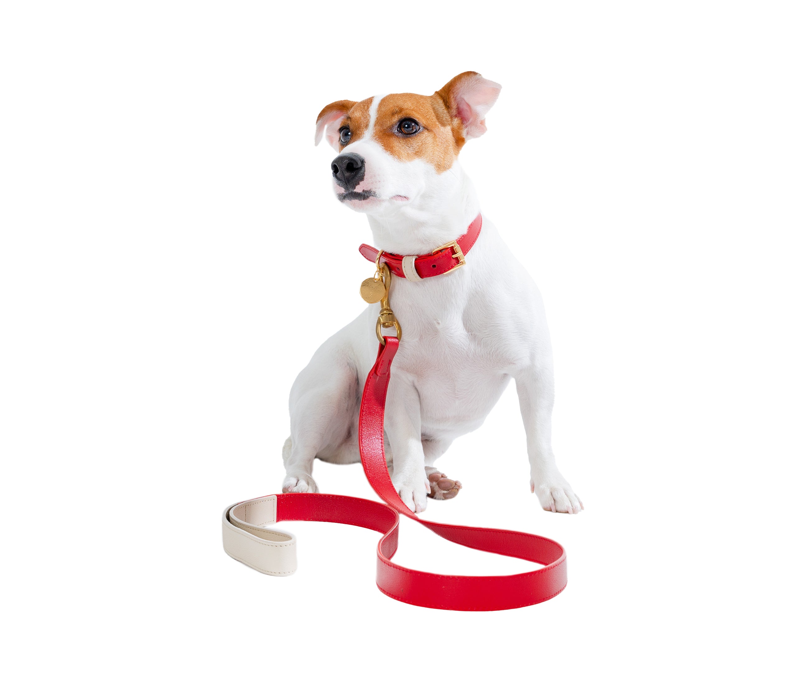 La correa, con mango crema y cuerpo rojo, integra un mosquetón dorado de cobre macizo, aportando seguridad con una estética impecable. Juntas, estas piezas no solo definen un estilo: crean tendencia.